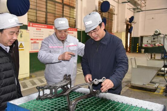 2017年2月23日下午,十堰市副市長王曉、市經(jīng)信委書記康雙成一行來東風(fēng)精鑄考察、調(diào)研。王曉副市長帶隊(duì)饒有興趣地參觀了東風(fēng)精鑄生產(chǎn)現(xiàn)場與檢測中心,并與杜孔明總經(jīng)理就東風(fēng)精鑄未來發(fā)展定位與政府部門職能服務(wù)環(huán)境改善等進(jìn)行了溝通交流。